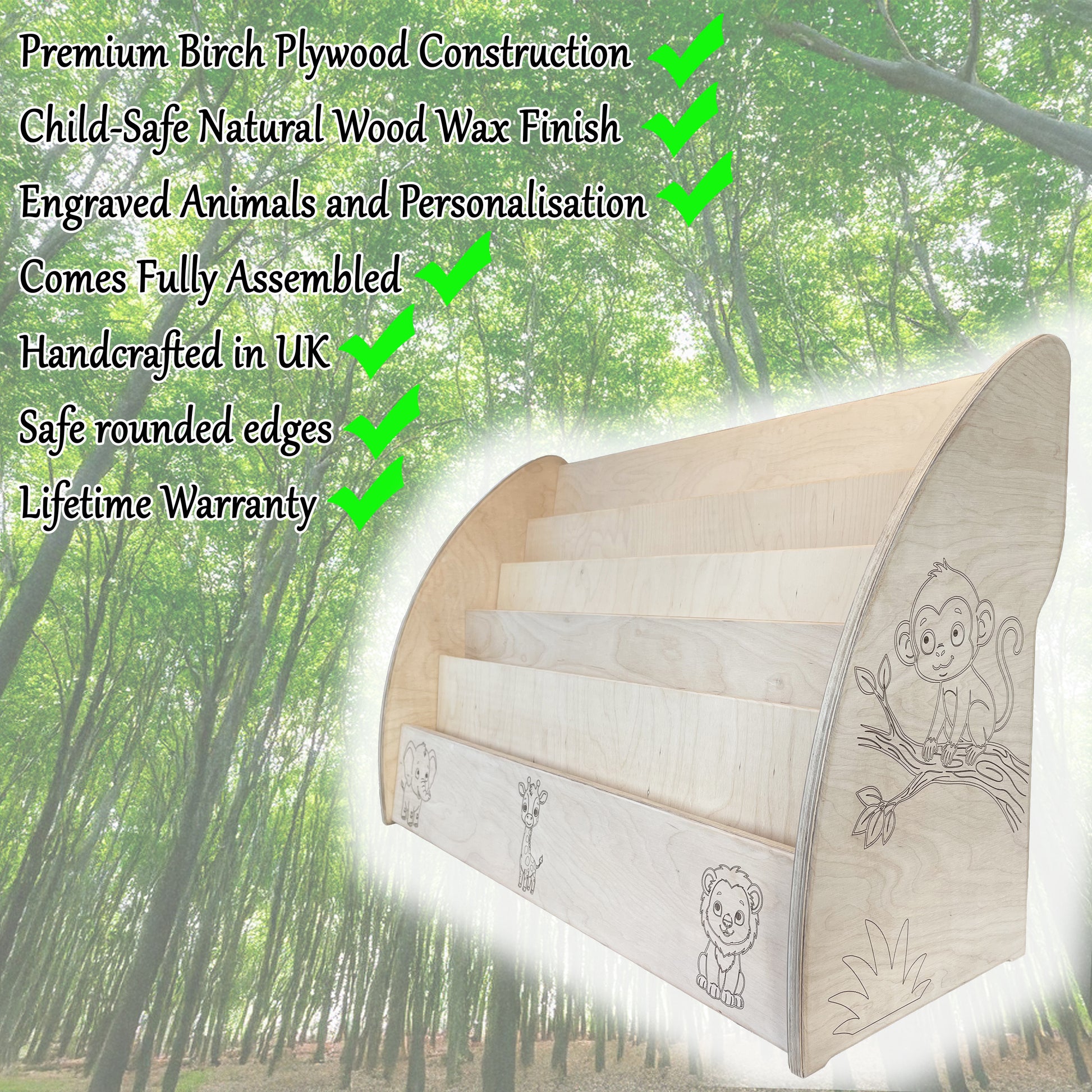 Montessori Safari Bookcase Personalised & Handmade in UK, Fully Assembled, Lifetime Guarantee